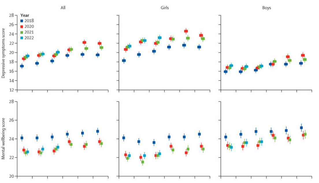 The research team‘s earlier study, from 2021, showed an increase in depressive symptoms and a decrease in mental well-being within a year after lockdowns and school closures began. The new study shows those problems persist.